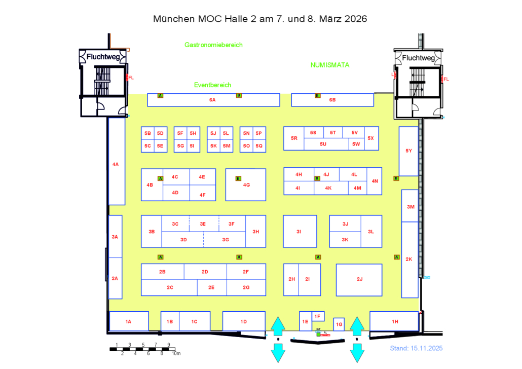 Die Philatelia München befindet sich überwiegend in Halle 2 des MOC München. Die NUMISMATA München findet in Halle 3 statt.